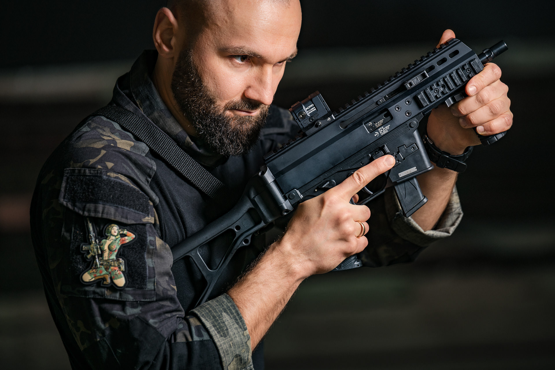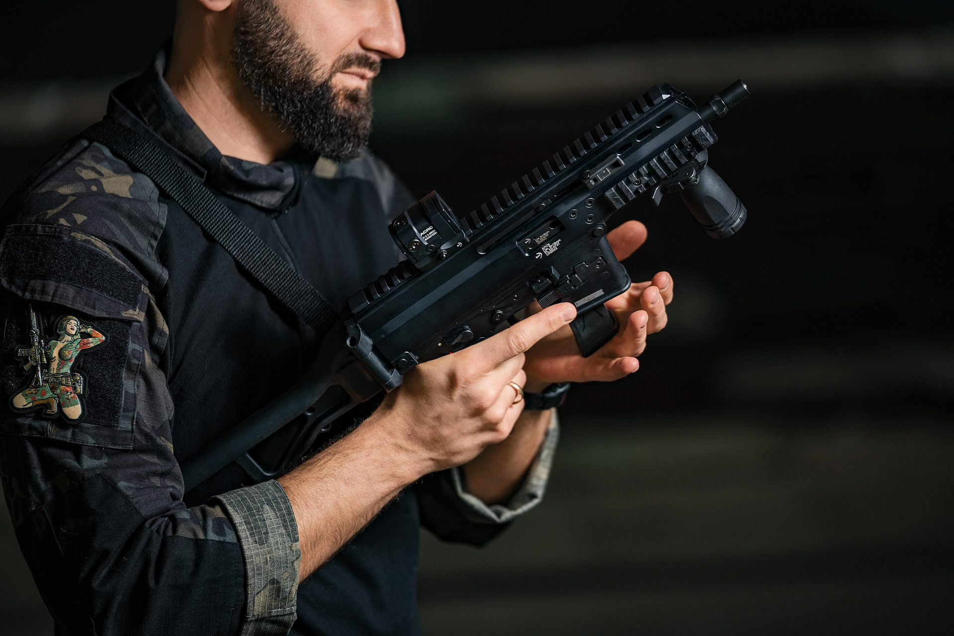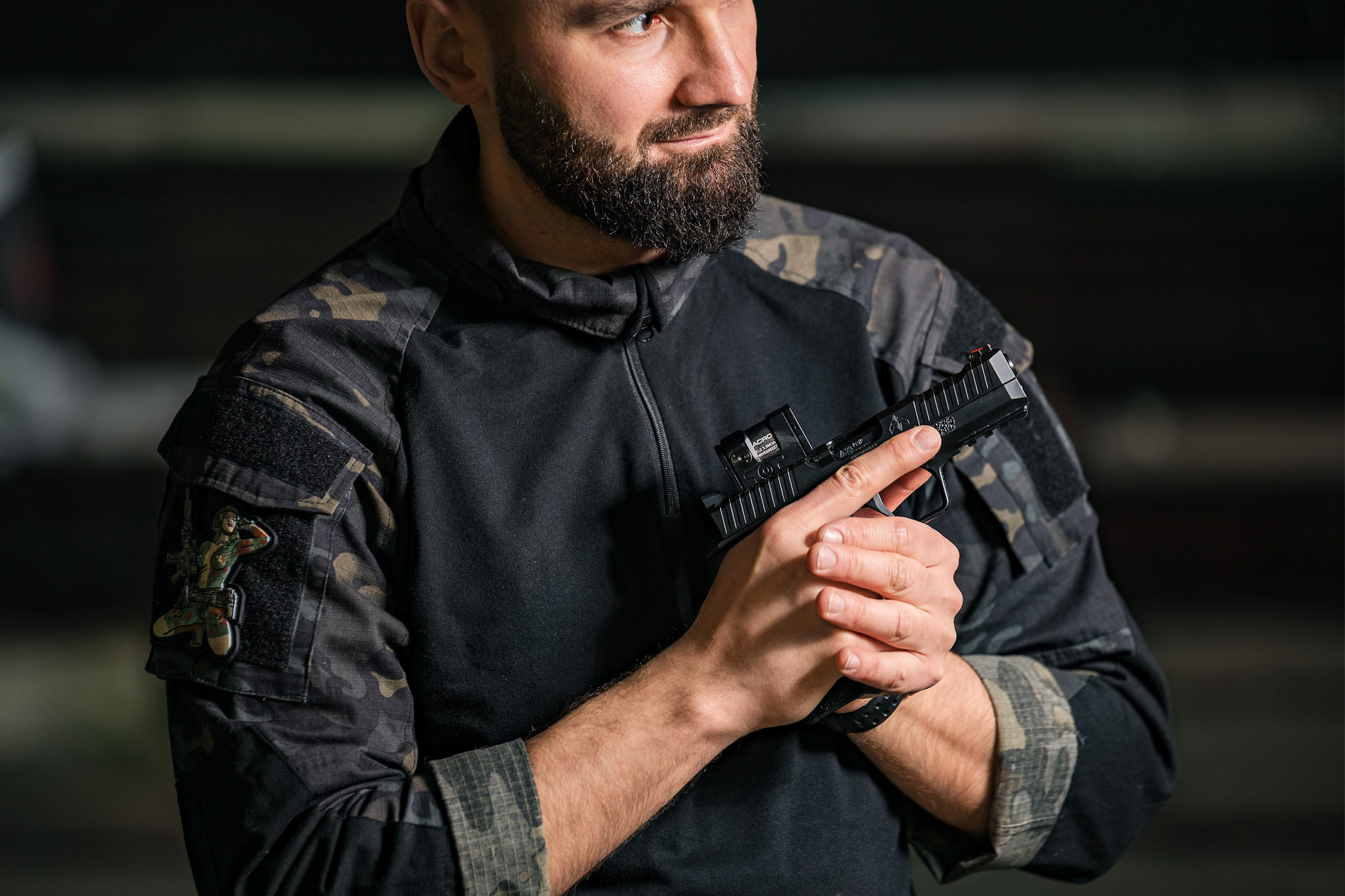Realizacja kompleksowej sesji fotograficznej dla sklepu z bronią Guns Masters we Wrocławiu, obejmującej zarówno zdjęcia produktowe, jak i dynamiczne ujęcia z modelami prezentującymi broń w użytkowaniu.