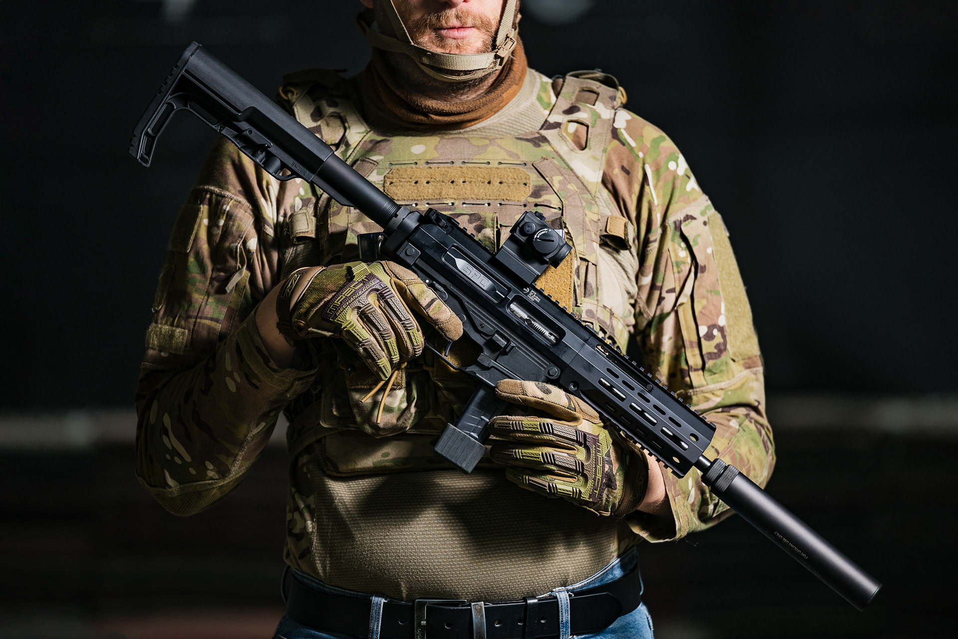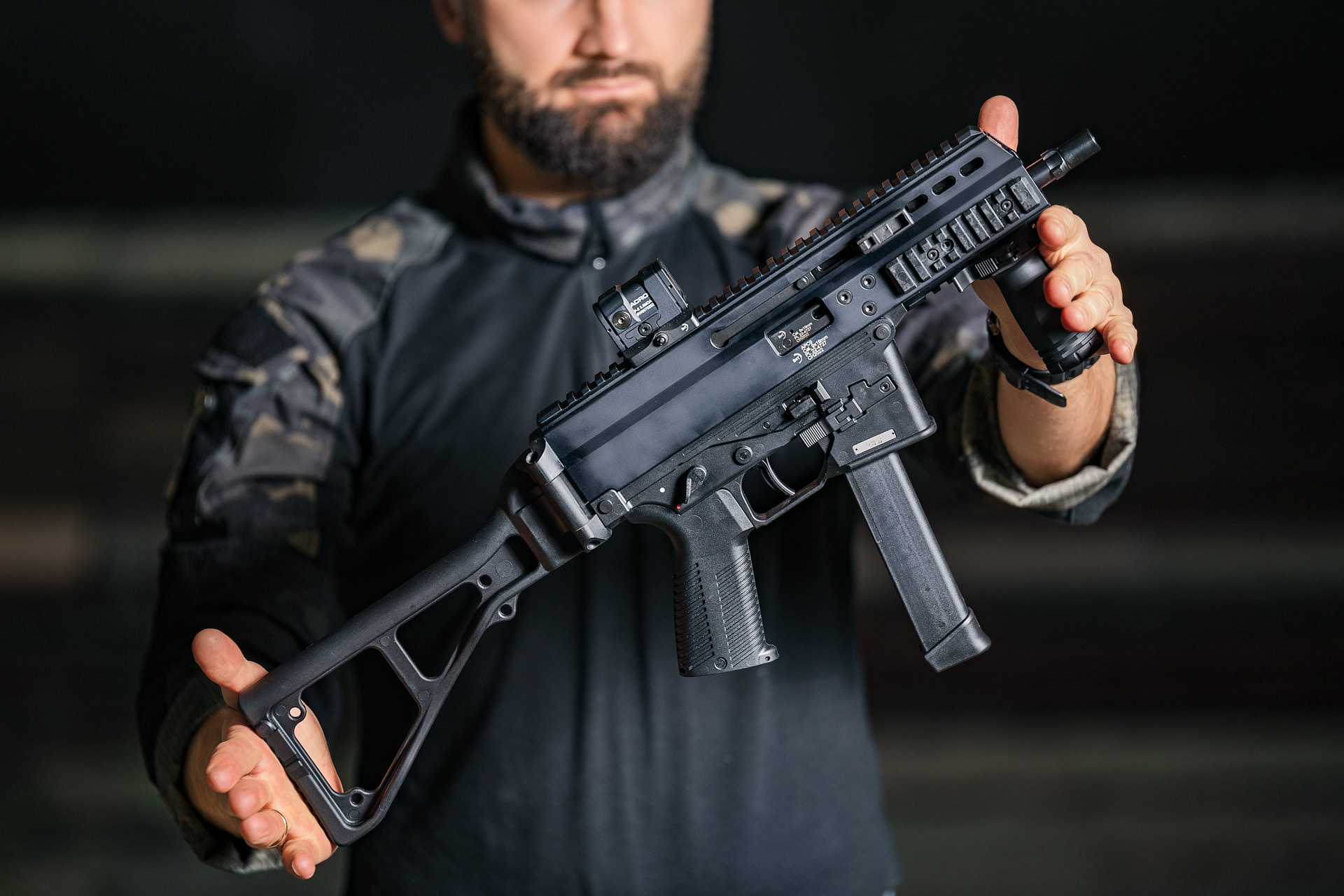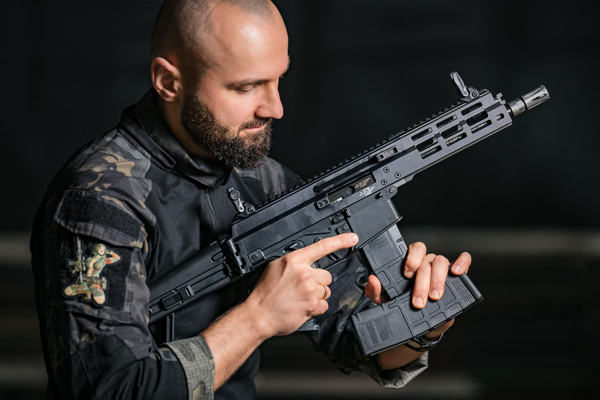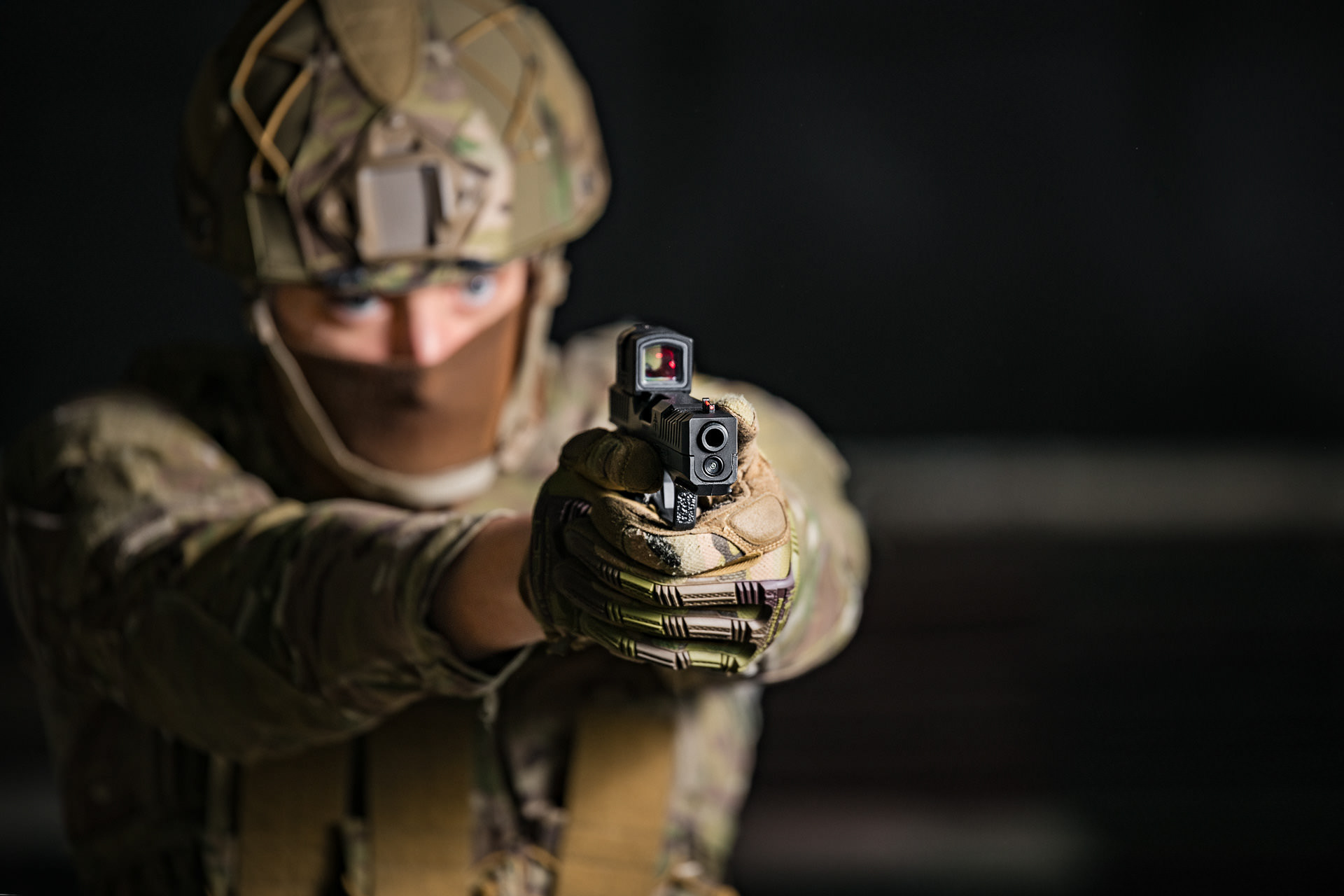 Realizacja kompleksowej sesji fotograficznej dla sklepu z bronią Guns Masters we Wrocławiu, obejmującej zarówno zdjęcia produktowe, jak i dynamiczne ujęcia z modelami prezentującymi broń w użytkowaniu.